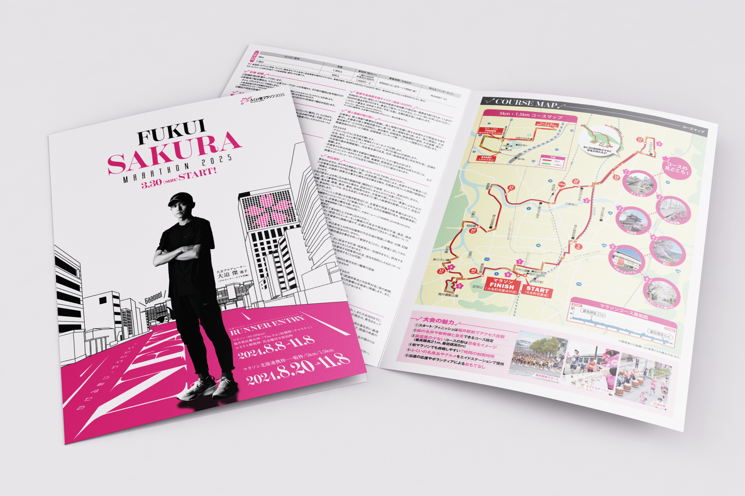ふくい桜マラソン2025のビジュアル、ポスター、パンフレット、